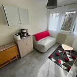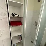 A microwave oven, an electric kettle, and a refrigerator are also offered. The nearest Cimetiere du Nord bus stop is a short walk from the apartment.